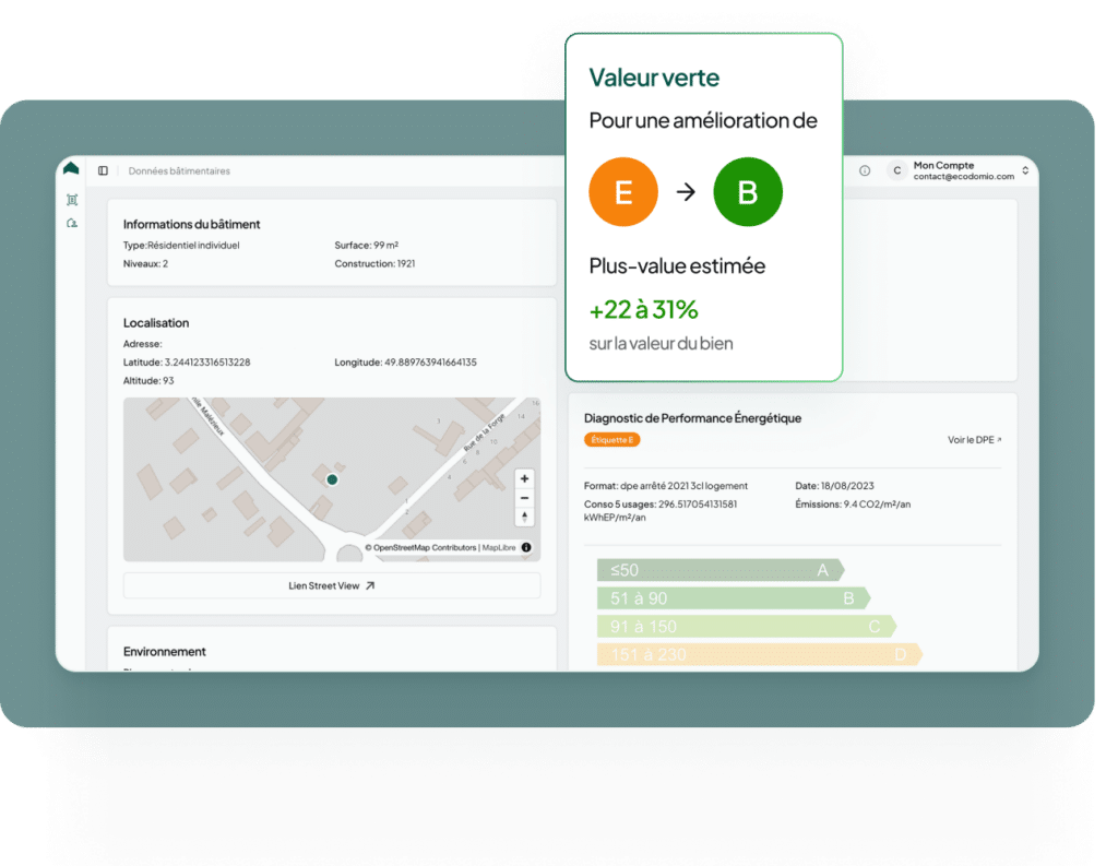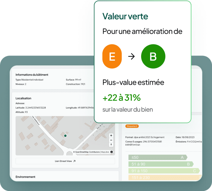 Accédez instantanément aux informations descriptives et thermiques du bâtiment.