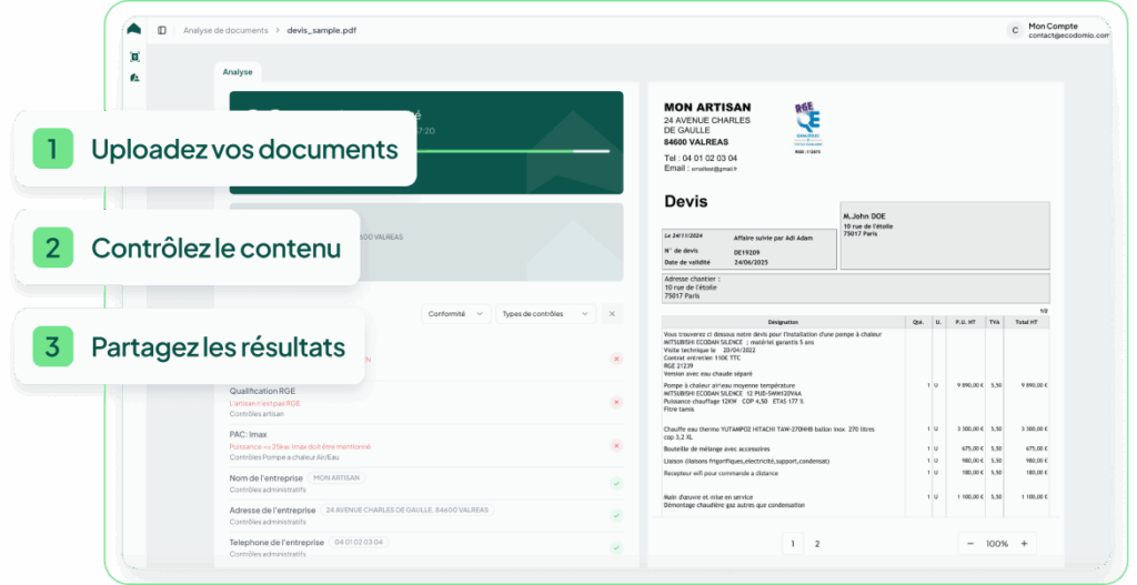 Ecodomio simplifie et sécurise la validation des dossiers de rénovation énergétique grâce aux contrôles automatisés. Réduisez les délais et les coûts administratifs, et assurez-vous de la conformité de chaque demande.